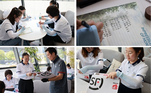 初夏的酒都公園涼風習習,酒史館前的大草坪,布置精美雅致,粉紅氣球與鮮花交相輝映,將儀式感拉滿,歡迎酒嫂的到來。“我愛洋河”“我是洋河酒嫂,我自豪”“愛上洋河,愛在洋河”“小家美滿,洋河大家越來越好”……酒嫂拍照留念記錄下最美好的時刻,并寫下對愛人、對家庭、對洋河最真摯的祝愿。